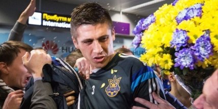 Футболистов сборной рано утром встретили в Борисполе десятки болельщиков.