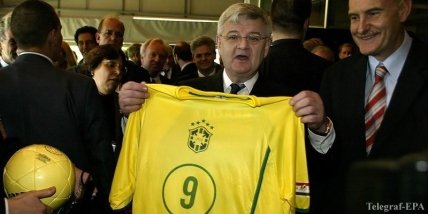 Экс-министр иностранных дел Германии Йошка Фишер с футболкой сборной Бразилии