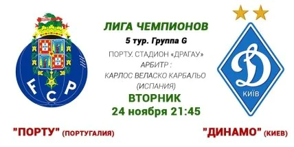 Матч "Порту" - "Динамо" начнется в Порту в 21:45 по киевскому времени.