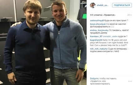 Известный футбольный агент Вадими Шаблий выложил фотографию вместе с капитаном "Днепра".