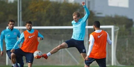 В первой футболисты выполнили тактическое упражнение с держанием мяча, при этом в различных зонах поля были свои ограничения и правила. А затем, разделившись наи две команды, сразились в знакомом "аквариуме".