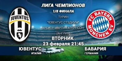 Прямая трансляция матча 1/8 Лиги чемпионов между туринским "Ювентусом" и мюнхенской "Баварией".