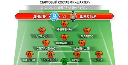 "Днепр" - "Шахтер": стартовые составы команд