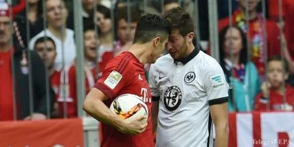 Форвард "Баварии" Роберт Левандовски остался недоволен выступлением команды в матче с "Айнтрахтом".