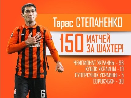 Матч "Шахтер" - "Брага" стал 150-м для Тараса Степаненко в составе Горняков.
