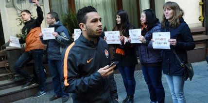 В день игры донецкая команда отправилась в традиционную прогулку. Во Львове Горняков встречали плакатами.