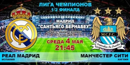 Текстовая трансляция ответного матча 1/2 финала Лиги чемпионов УЕФА между клубами "Реал" (Мадрид) и "Манчестер Сити".