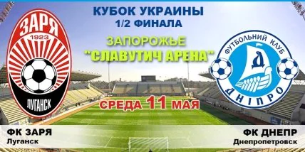 Текстовая онлайн-трансляция ответного матча 1/2 финала Кубка Украины между луганской "Зарей" и днепропетровским "Днепром".