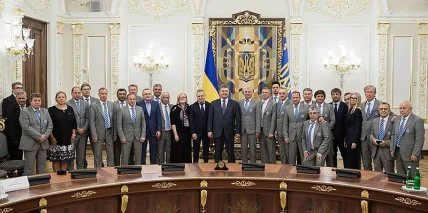 Петр Порошенко принял игроков, врачей, администраторов киевского «Динамо», 30 лет назад выигравших Кубок кубков.