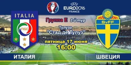 17 июня игровой день на чемпионате Европы по футболу во Франции откроют Италия и Швеция. Команды представляют группу Е, в которой также выступают сборные Бельгии и Ирландии. В 1-м туре итальянцы достаточно легко переиграли бельгийцев, а шведы сыграли вничью с ирландцами. Италия и Швеция сыграли друг против друга 14 матчей: 7 побед на счету Швеции, 5 раз побеждали итальянцы, дважды матчи заканчивались вничью.