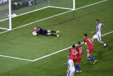 55' - Вайсс (Словакия) имеет хороший момент во вратарской, опасно бьет в нижний угол, но Джо Харт выручает, как Тим Ховард на чемпионате мира.