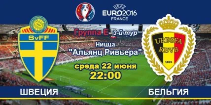 Сегодня, 22 июня, в рамках 3-го тура ЧЕ-2016 в группе Е встретятся Швеция и Бельгия. Команды сыграли между собой 14 матчей: 5 побед на счету скандинавов, 2 раза была зафиксирована ничья, 7 раз бельгийцы оказывались сильнее. Ранее на Евро-2016 сборная Швеции сыграла вничью с Ирландией и проиграла команде Италии. Сборная Бельгии, в свою очередь, уступила итальянцам и разгромила ирландцев.