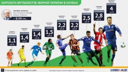 Первое место в списке самых богатых футболистов сборной получил форвард киевского "Динамо" Андрей Ярмоленко. Его годовой доход в среднем составляет около 4 миллионов долларов.