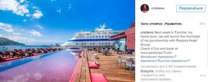 Известно, что строительство отелей под брендом Роналду - это совместный проект Криштиану и компании Pestana Hotel Group. Футболист вложил в строительство отелей 38 млн евро, партнеры – около 80 млн. Напомним, что Роналду является самым высокооплачиваемым футболистом в мире (более 80 млн евро он заработал за последний год).