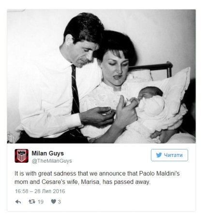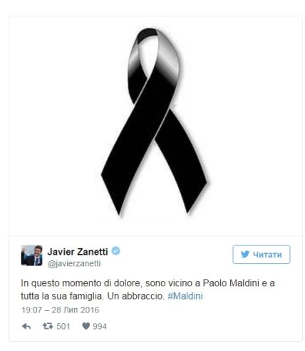 "В этот болезненный момент, я рядом с Паоло Мальдини и со всей его семьей."