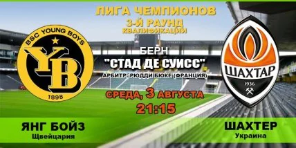 Сегодня, 3 августа, "Шахтер" проведет ответный матч 3-го квалификационного раунда ЛЧ против швейцарского "Янг Бойз". Игра состоится в Берне на стадионе с искусственным покрытием "Стад де Суисс". Начало встречи запланировано на 21:15 по киевскому времени. Прямая телевизионная трансляция этого матча состоится на каналах "Украина" и "Футбол 1". Напомним, в первой игре "Шахтер" добыл уверенную победу со счетом 2:0.