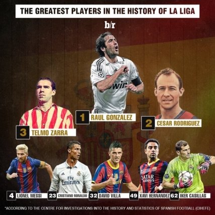 Беря во внимание каждого игрока, который когда-либо выступал в Ла Лиге с 1928 года, Рауль является лучшим по статистическим показателям.