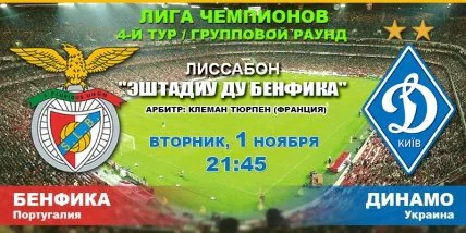 Онлайн-трансляция матча 4-го тура группового этапа между лиссабонской "Бенфикой" и киевским "Динамо"