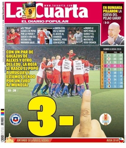 В южноамериканской прессе сразу же заговорили о двухматчевой дисквалификации нападающего, а чилийская «La Cuarta» отреагировала на данный инцидент по-своему: