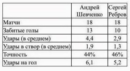 90-х годов. Так вот, оказывается, Андрей Шевченко в тех двух легендарных сезонах нанес по воротам 79 ударов в 18 матчах. Зато у Сергея Реброва была выше эффективность выстрелов...