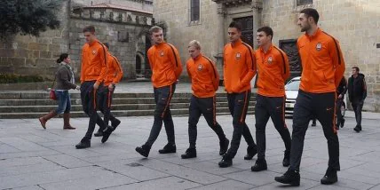 Утром в день матча с "Брагой" тренерский штаб и игроки "Шахтера" совершили традиционную прогулку по городу.
