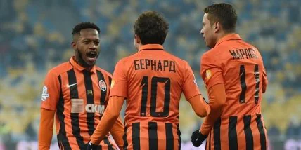 "Шахтер": Пятов – Срна, Кучер, Ракицкий, Исмаили – Степаненко, Фред – Марлос, Коваленко, Бернард – Феррейра.