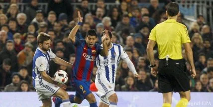 Нападающий Барселоны Луис Суарес мог быть вполне закономерно удален в матче против Реал Сосьедада.