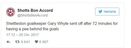 В молодежном чемпионате Шотландии произошел вопиющий случай с вратарем команды "Шеттлстон", который попросился в туалет во время матча.