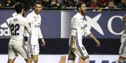 "Реал" забил три гола в ворота "Осасуны" в рамках 22 тура Примеры (3:1).