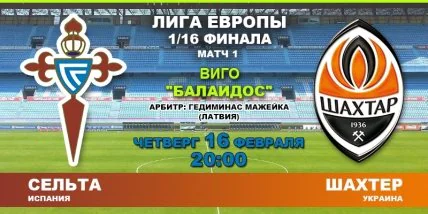Текстовая онлайн-трансляция первого матча 1/16 финала Лиги Европы "Сельта" - "Шахтер".