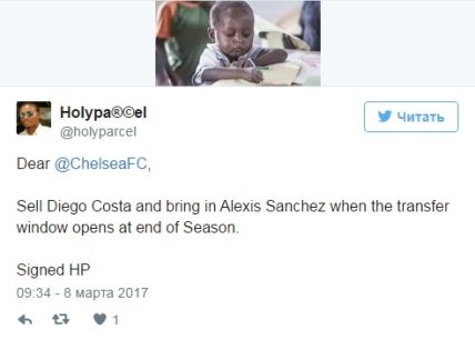 "Дорогой "Челси". Продай Диего Косту в следующем сезоне и купи Санчеса", – пишет фанат.