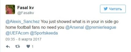 После этого некоторые фаны "канониров" резко высказались в сторону чилийца и заявили, что не хотят видеть футболиста в команде.