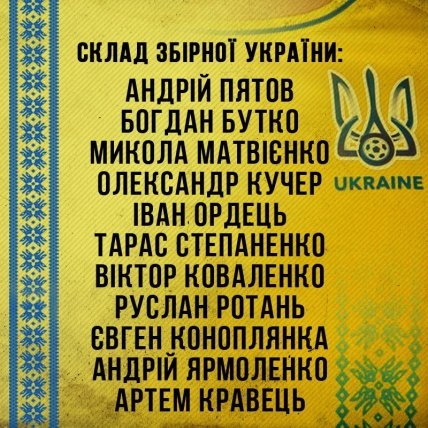 Украина: Пятов (В) 12, Бутко 2, Ордец 3, Матвиенко 4, Кучер 5, Степаненко 6, Ярмоленко 7, Кравец 9, Коноплянка 10, Ротань (К) 14, Коваленко 22.
