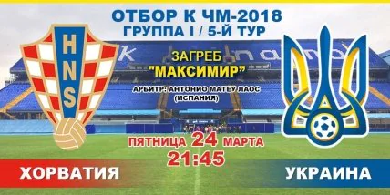 Текстовая онлайн-трансляция матча 5-го тура группового раунда отбора на Чемпионат мира-2018 Хорватия - Украина 24 марта.