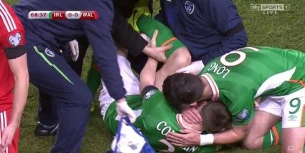 В Дублине Ирландия и Уэльс сыграли вничью 0:0 в рамках отбора на ЧМ-2018. Но поединок запомнился совсем другим.