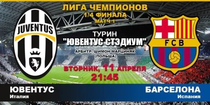 Прямая текстовая трансляция первого матча 1/4 финала Лиги чемпионов между туринским "Ювентусом" и каталонской "Барселоной".