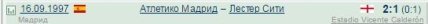 А вот в двух других встречах, которые состоялись в 1997 году в рамках Кубка УЕФА, "Лестер" выглядел активнее и даже мог рассчитывать на победу за счет выездного гола, однако и 20 лет назад удача улыбнулась "Атлетико".