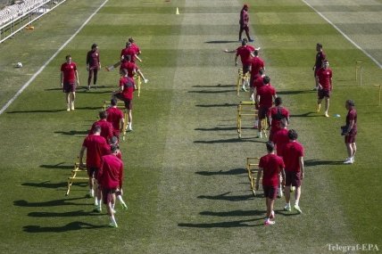 Предматчевые тренировки команд:
