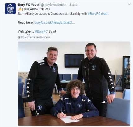 "Мой внук недавно покинул "Манчестер Юнайтед". Это является разочарованием для него, но на самом деле это хорошо для его карьеры, так как он подписал контракт с "Бери". Если он достаточно хорош, то окажется в первой команде этого клуба намного раньше, чем если бы это случилось в МЮ, — приводит слова Эллардайса The Sun.