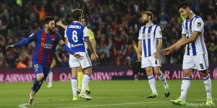 Голы: 1:0 – 17 Месси, 2:0 – 37 Месси, 2:1 – 42, автогол Умтити, 3:1 – 44 Пако Алькасер, 3:2 – 45 Прието.