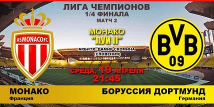 Прямая текстовая трансляция ответного матча 1/4 финала Лиги чемпионов между "Монако" и дортмундской "Боруссией".