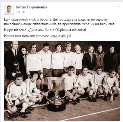 Президент Украины поздравил "Динамо" с 90-летним юбилеем