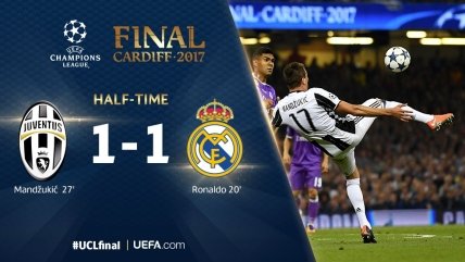 Первый тайм был очень насыщен на события. С первых минут темп игры показал все возможности оеих команд. "Ювентус" начал игру с прессинга, но Криштиану Роналду "выстрелил" на 20-й минуте и заставил говорить об очередном рекорде (португалец забивает в третьем финале ЛЧ). Но у "Старой Синьоры" нашелся быстрый ответ - на 27-й минуте матча Марио Манджукич неймоверным ударом через себя перекинул Кейлора Наваса.