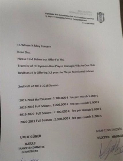 В подтверждение источник публикует фото документа с подписью агента футболиста, согласно которому хорват переберется в Стамбул на правах свободного агента в зимнее трансферное окно и подпишет полноценный контракт на 3,5 года.