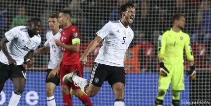 Чемпион мира, лидер группы С Германия получила седьмую победу подряд, одолев в Праге Чехию - 2:1 (решающий мяч на 88-й минуте ударом головой забил Матс Хуммельс), футболисты Сан-Марино в Серравалле проиграли Северной Ирландии - 0:3 , а Норвегия в Осло взяла верх над Азербайджаном - 2:0.