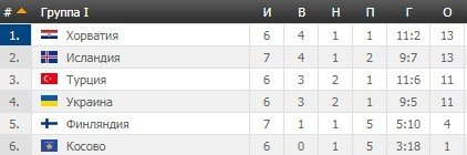 Сборная Украины перед 7-м туром отборочного цикла занимает 4-е место в группе I, Турция -3-я, опережая "Дружину" лишь по дополнительным показателям. Лидирует Хорватия, которая набрала 15 очков.