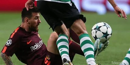 "Барселона" с трудом переиграла "Спортинг" в Лиге чемпионов (Фото)В одном из эпизодов матча 30-летний аргентинец оказался на газоне, однако сразу же сообразил гениальный финт, который однако не удалось реализовать до конца.