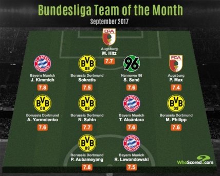 В 5 матчах Бундеслиги, прошедших в сентябре, украинец отличился 4 результативными передачами и 1 важнейшим голом в ворота Аугсбурга, принесшим Шмелям победу (2:1).