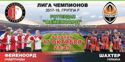 Прямая текстовая онлайн трансляция матча "Фейеноорд" - "Шахтер" 17 октября.