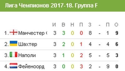 "Манчестер Сити" не без проблем переиграл "Наполи"Положение команд в турнирной таблице после 3 тура: